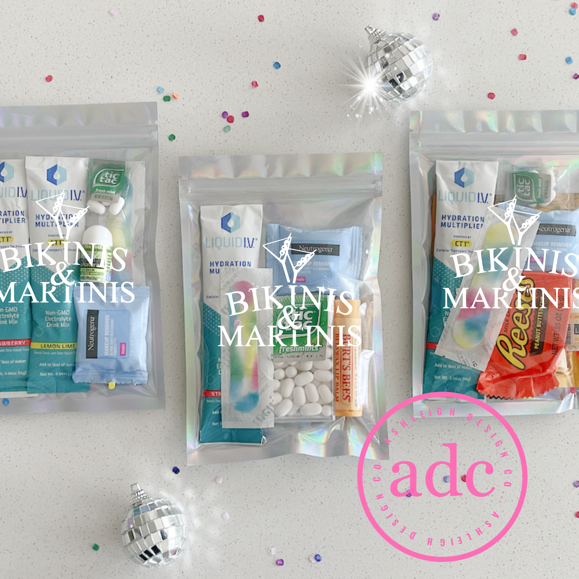 Hello 👋🏼 I’m Ashleigh, the designer and creator here at AshleighDesignCo. I started this shop back in 2019 when family members started asking for custom gifts. Little did I know this would turn into a successful side biz + creative outlet and home to the original holographic hangover kits (oh yeah!).